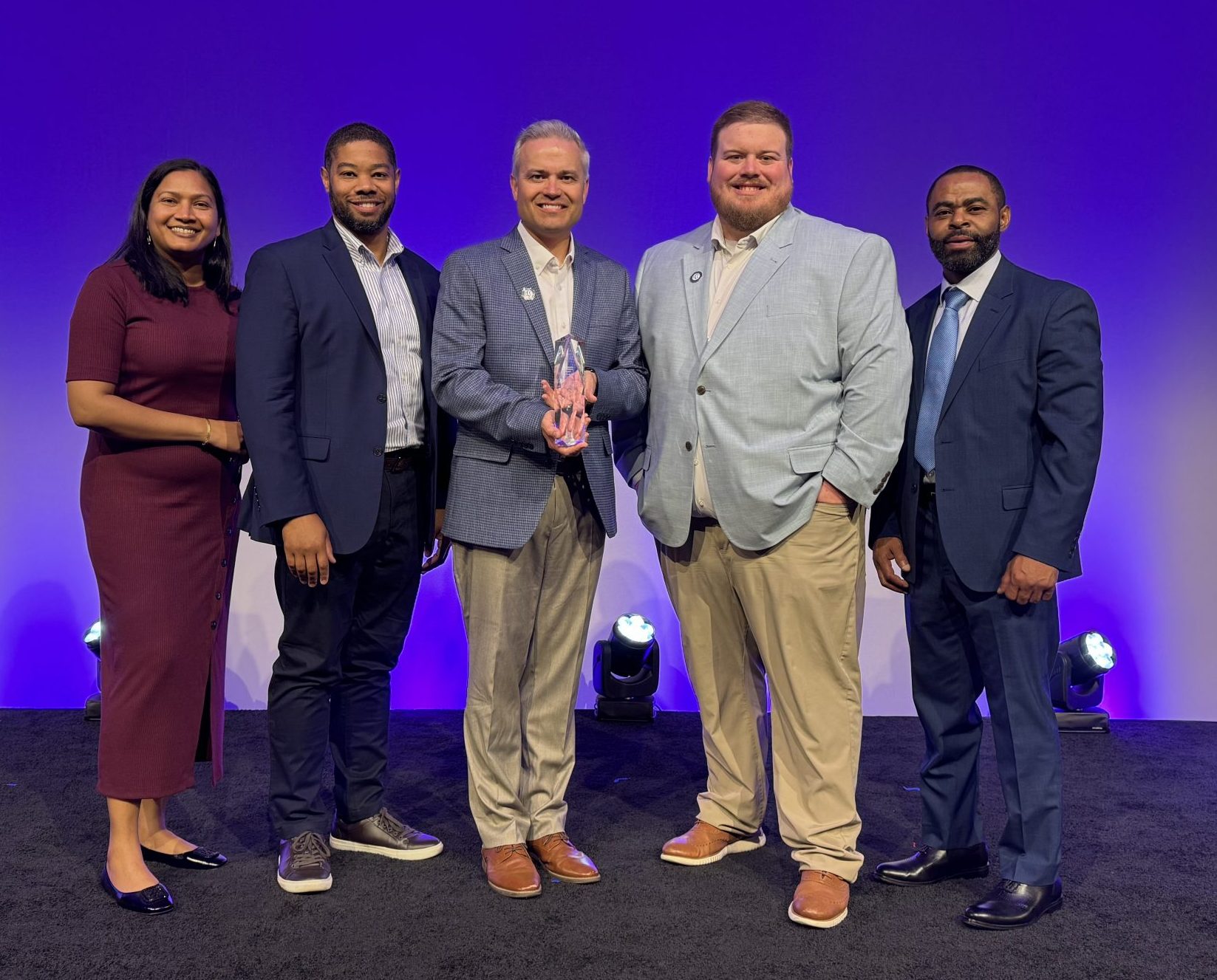 Pictured (left to right): Dillon Grieme, Safety Director; Russel Clayton, Vice President of Risk Management; Ike Pritchett, Ironwork Superintendent; Kate Sweeten, Communications Director; Trevor Fitch, Vice President of Field Operations